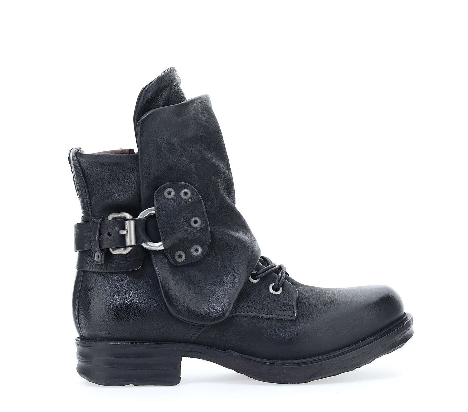 Den gode gamle klassiske støvlette fra Airstep i sort kalveskind med snøre-lukning, slag og lynlås på indersiden. Lædersåler med stødabsorberende gummi. Hæl på 2,5 cm i læderfiner. Skindforet. Rummelig i str. så de fleste går et nr. ned.