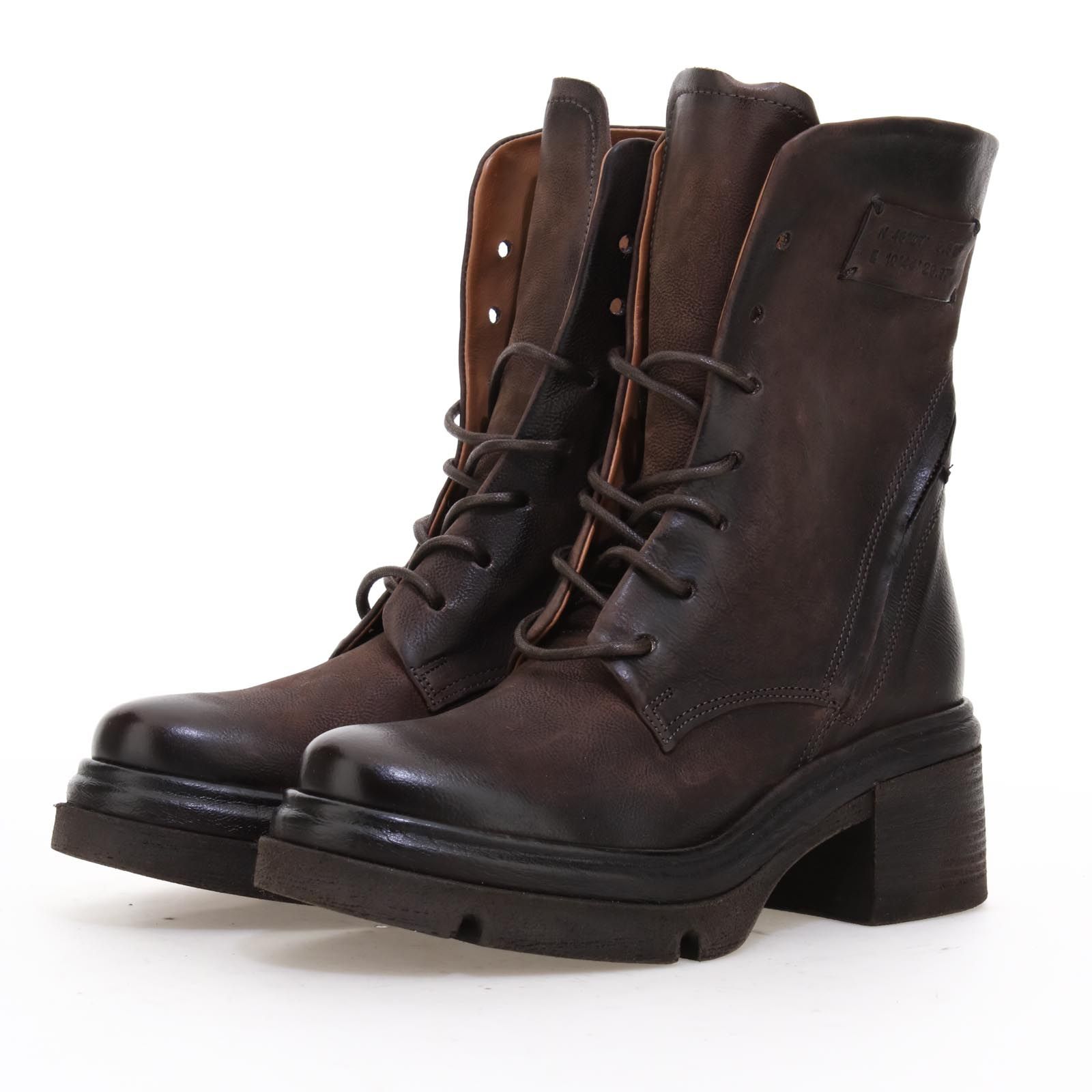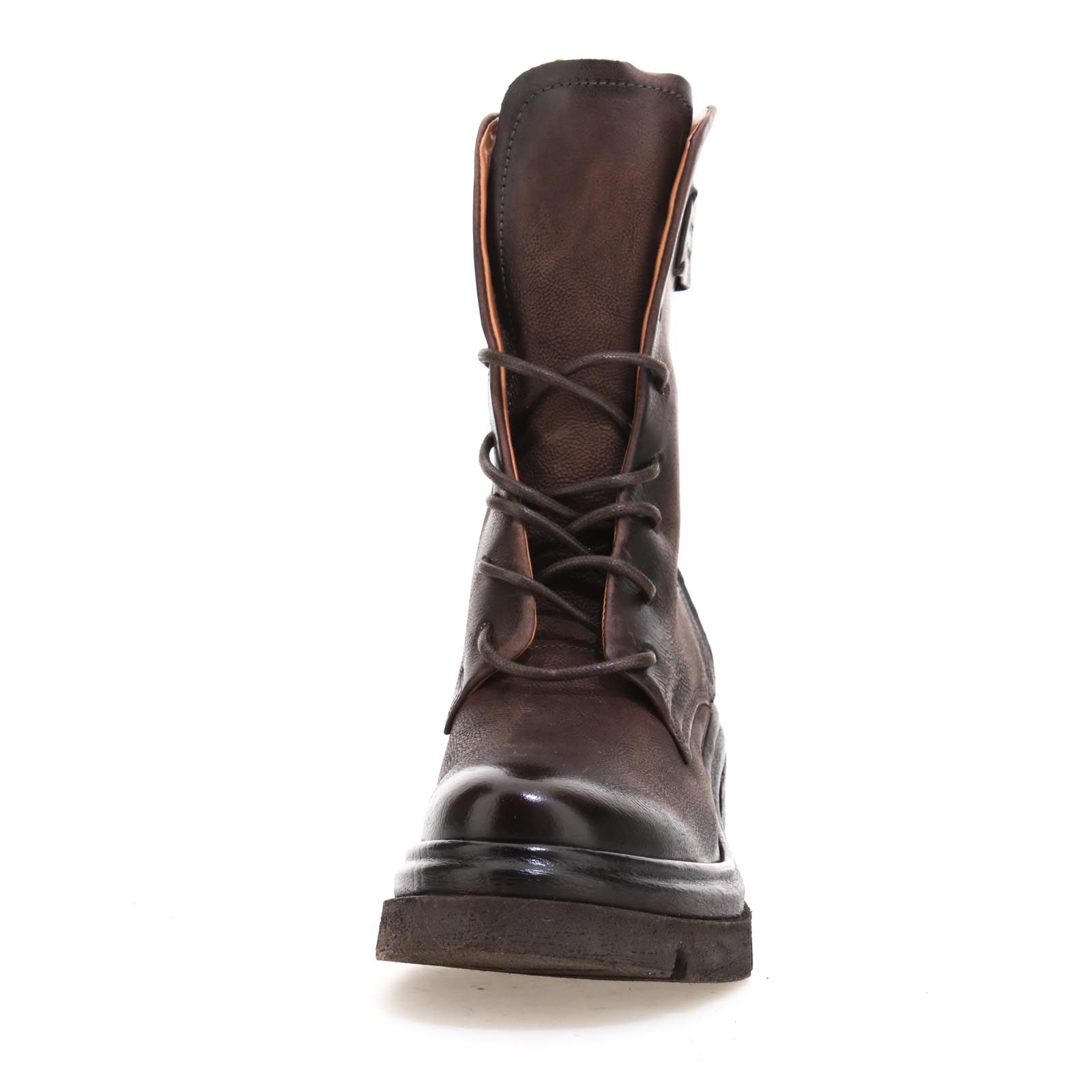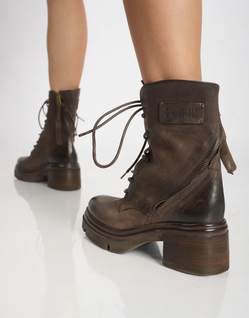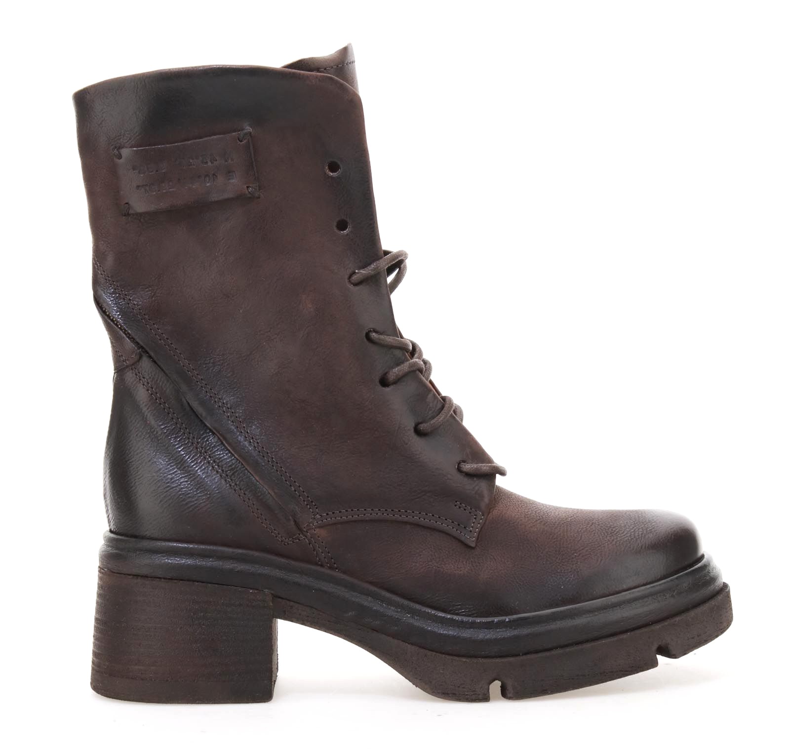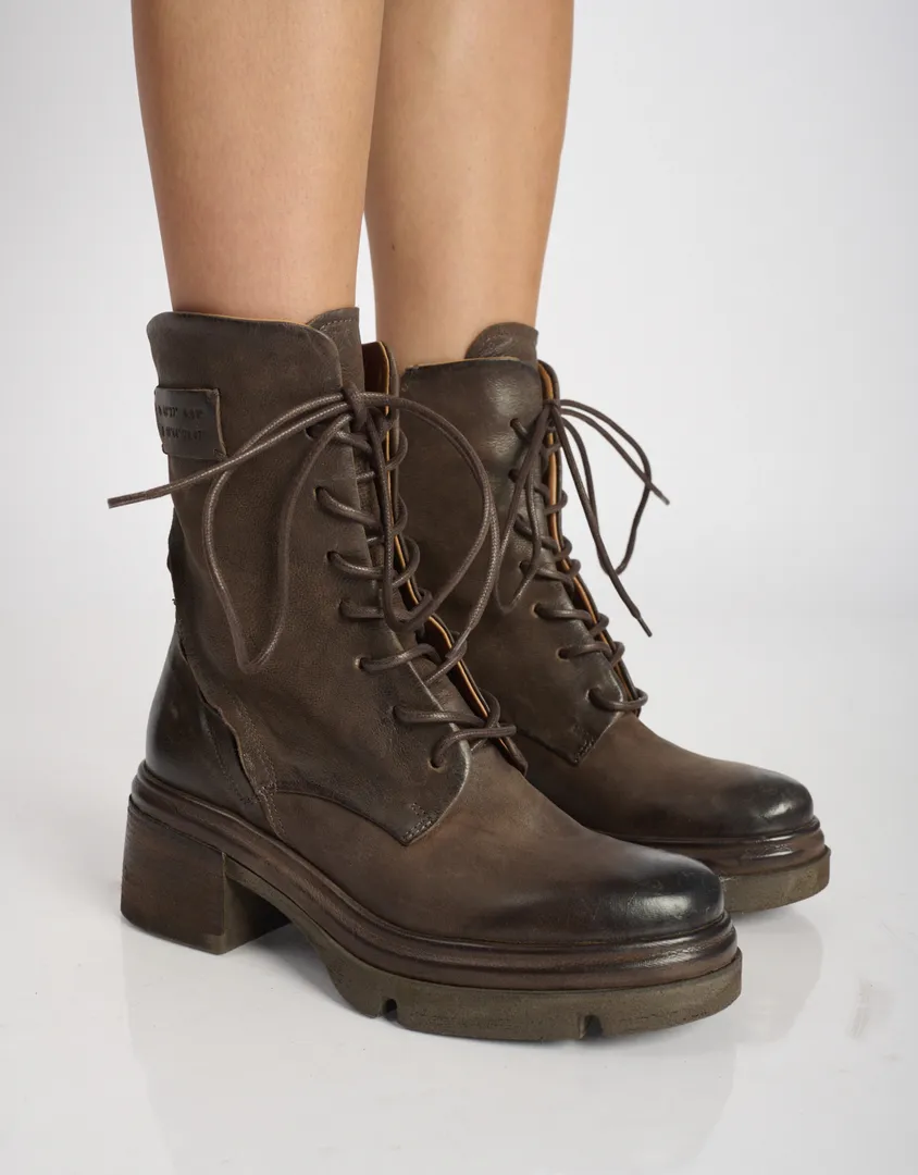 Støvlette fra Airstep i flammet brun ruskind med snøre og lynlås-lukning. Skindforet. Lædersåler med stødabsorberende gummi. Plateau på 1,5 cm og hæl i læderfiner på 4 cm og stødabsorberende gummi. Rummelig i str.