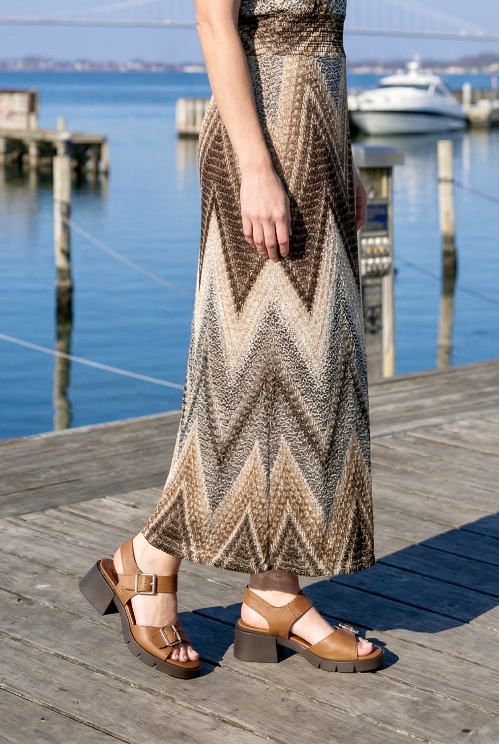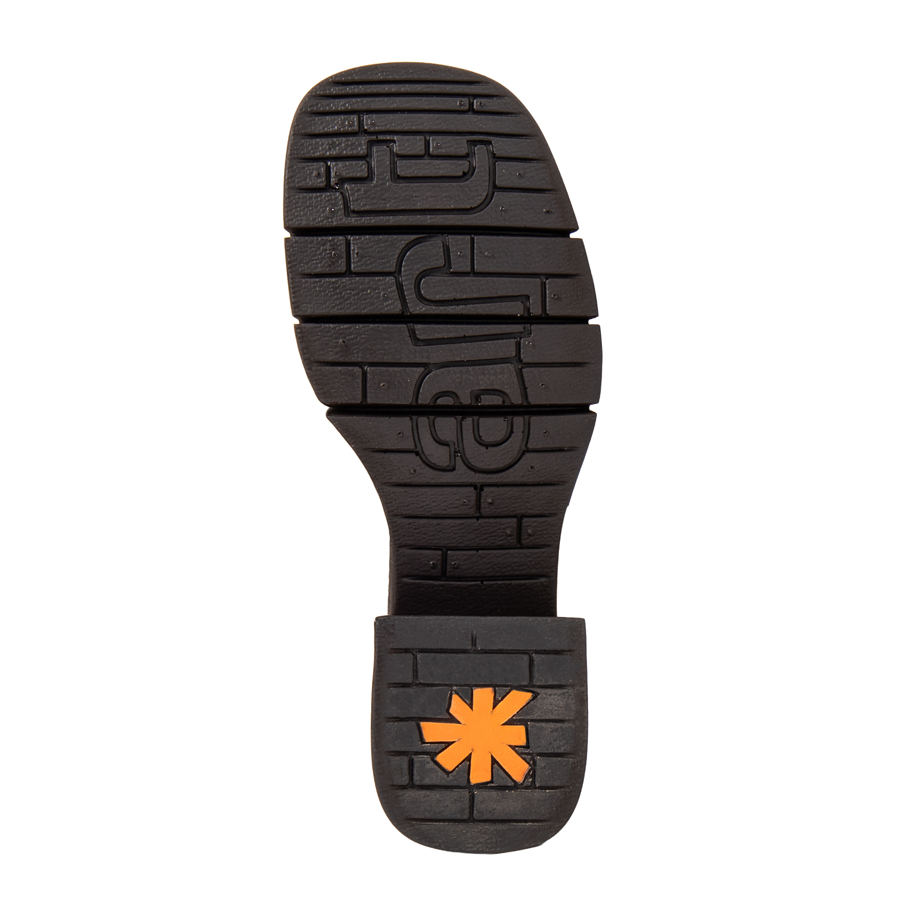 Sandal fra Art Company i cognacfarvet glat skind med spænder. Plateau og moderat hæl i stødabsorberende naturgummi på henholdsvis 2 og 5 cm. Skøn pasform, hvor hælhøjden ikke mærkes. Store i str., så hvis du ligger mellem to str. skal du gå ned.