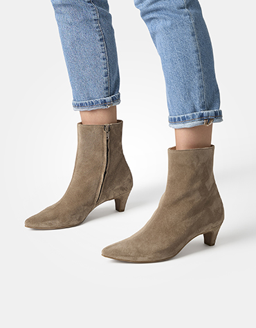 Fin støvlette i det blødeste sandfarvet ruskind fra Paul Green. Skindforet og med lynlås på indersiden. Lille hæl på 4 cm. Bløde og fleksible gummisåler. På trods af den lidt spidse snude har støvlen en helt fantastisk pasform. Den er fin til både jeans og kjoler, da den sidder pænt til om anklerne. Normal i str.