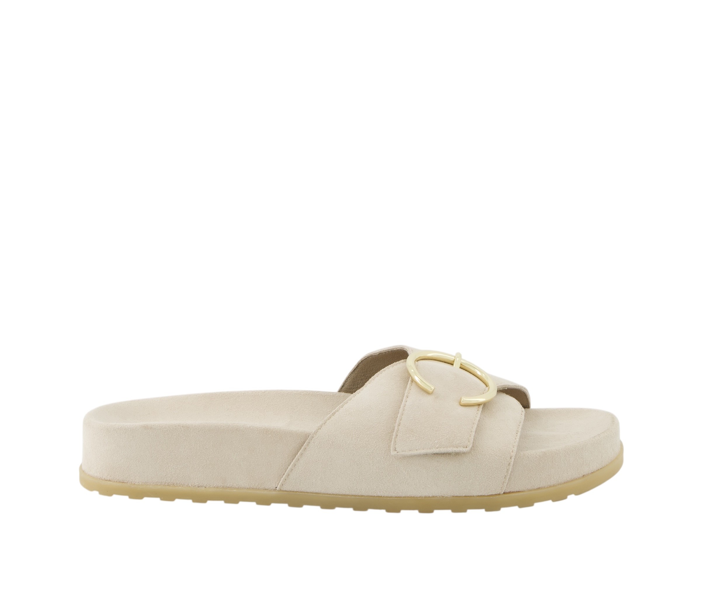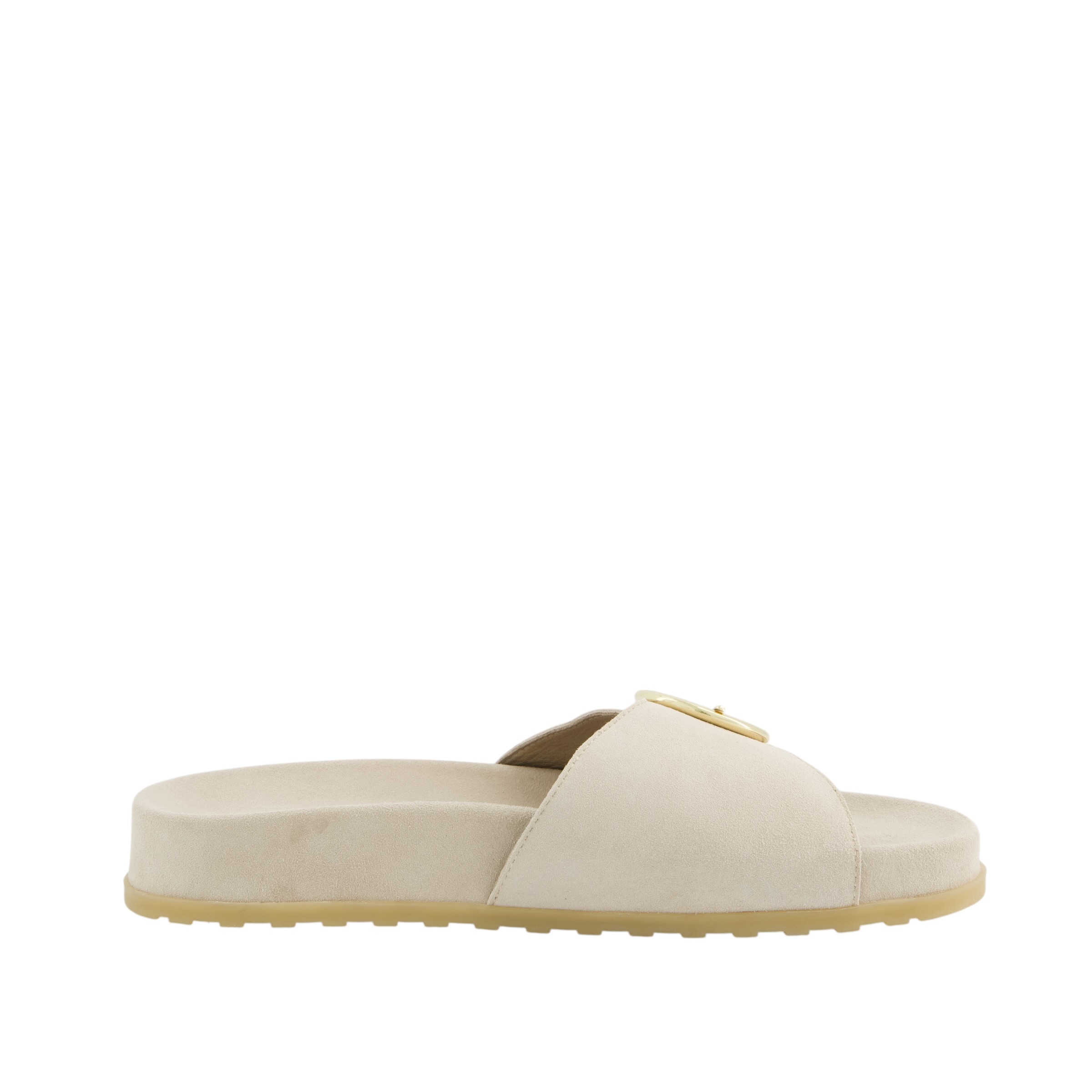 Slippers fra Paul Green i råhvid blød ruskind, der kombinerer komfort med et stilrent design. Den brede rem over foden og det dekorative guldfarvede spænde giver et eksklusivt og feminint udtryk. Den bløde fodseng og lette sål sikrer høj komfort hele dagen. Normale i str.