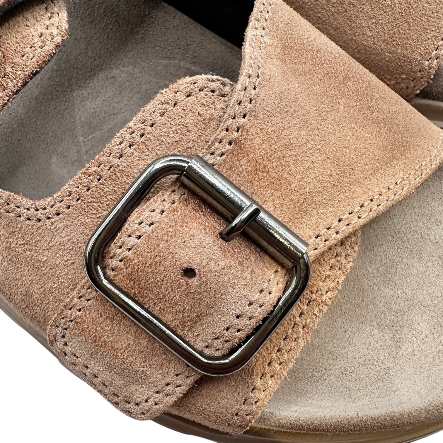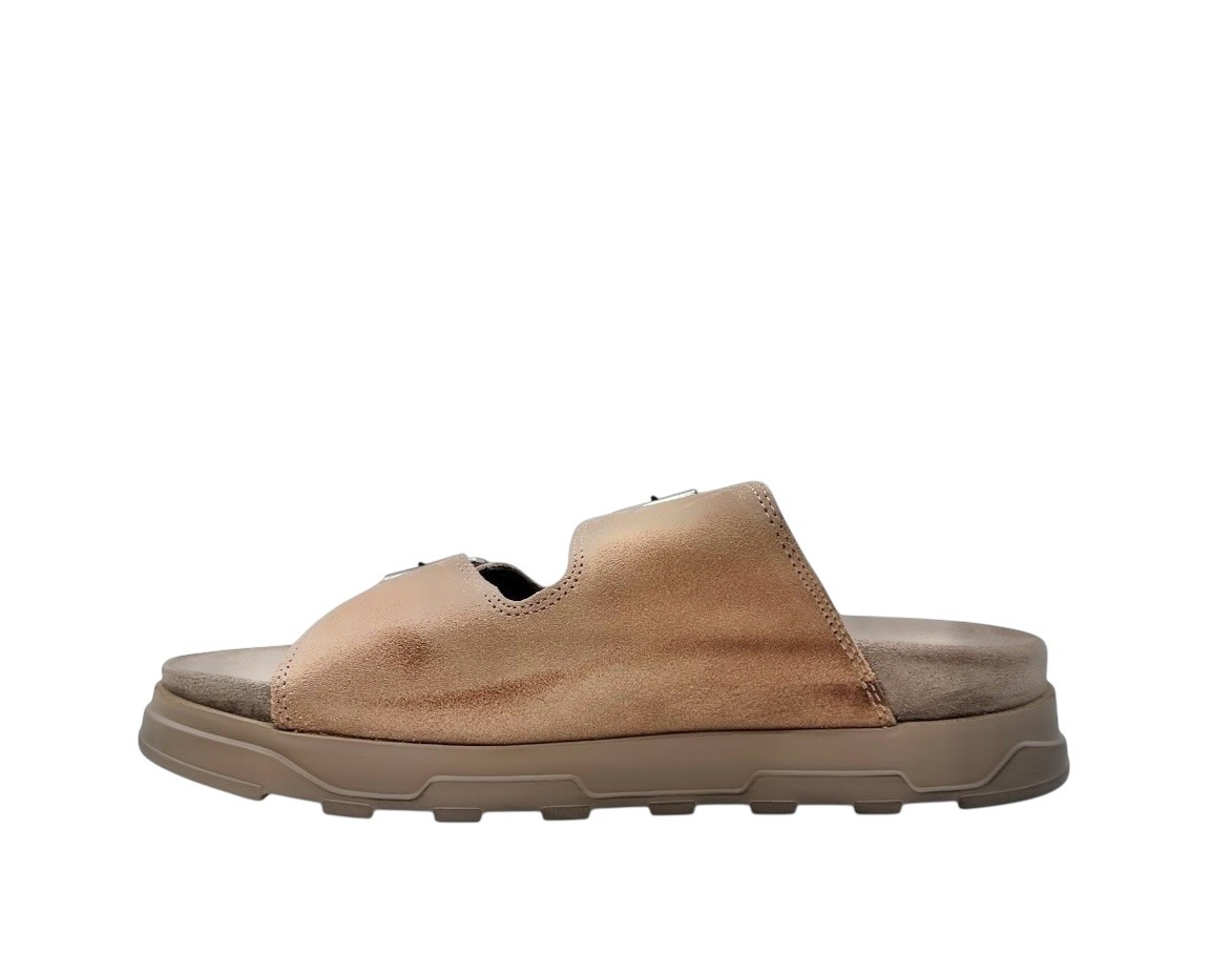 Lækker slippers fra danske Lofina i en flot flammet pudder farvet ruskind. Regulerbare spænder. Indersål i blødt polstret ruskind med svangstøtte. Kraftig blød sål i beige gummi. Normal i str.