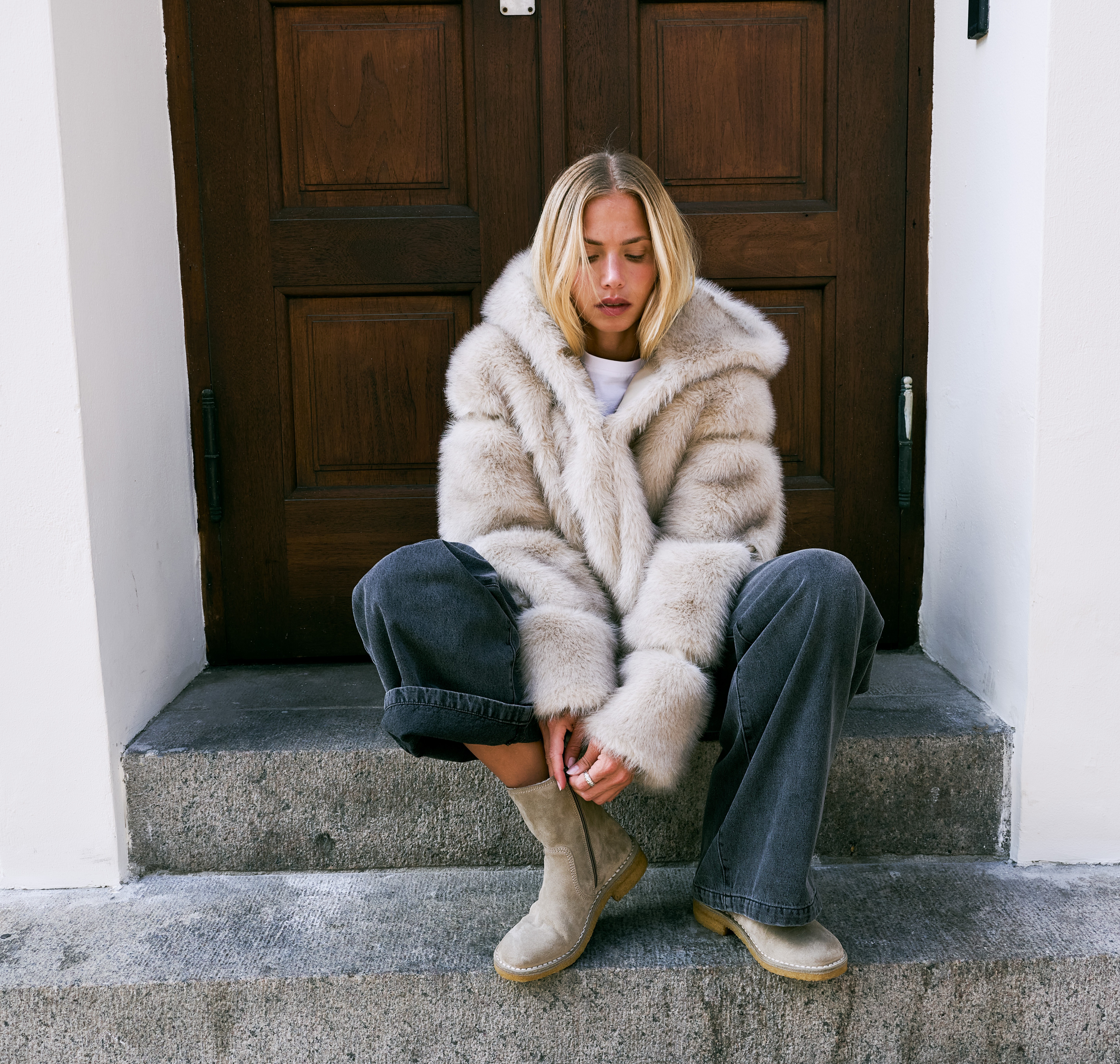 Billi Bi - Støvlette i sand ruskind med uldfoer - T6958