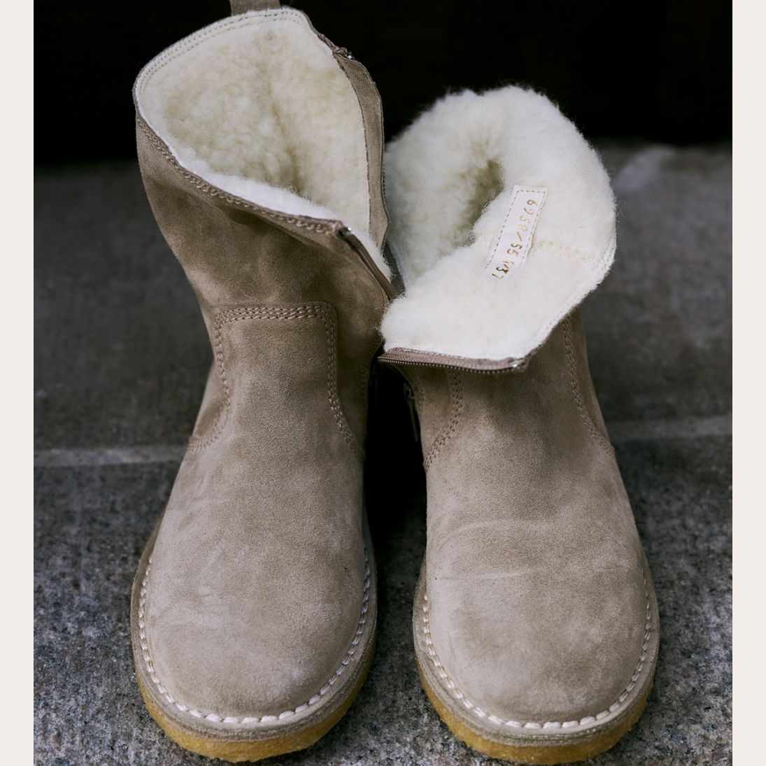 Støvlette fra Billi Bi i sandfarvet ruskind og lynlås på indvendig side. Rågummisåler. Lækkert blødt og varmt foer i 100 % uld. God plads til tæerne, men normal i str.