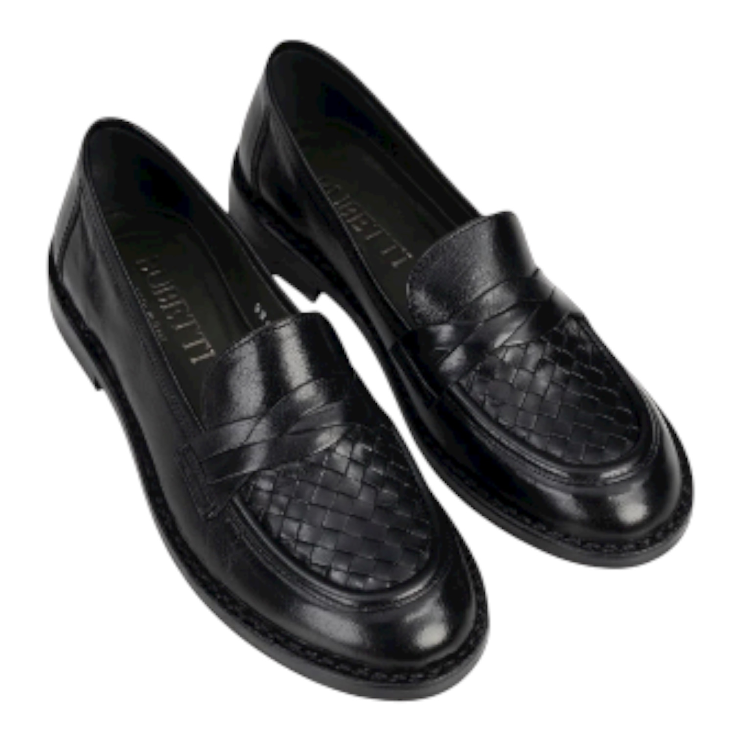 Bubetti - Loafer i sort med flet og lædersåler - 9912